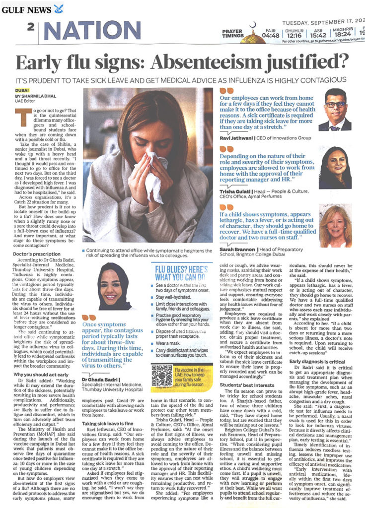 Read the complete article here: UAE: First signs of the flu – is absenteeism justified? | Health – Gulf News